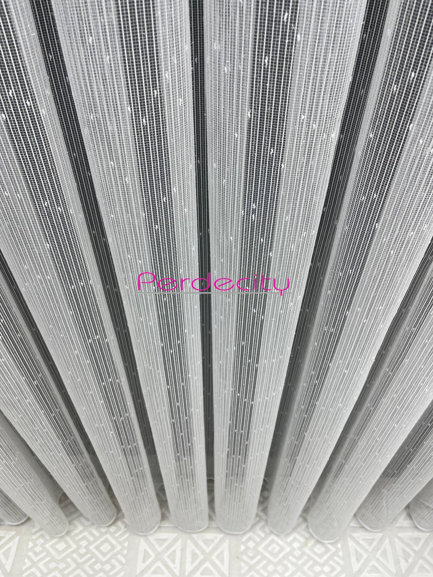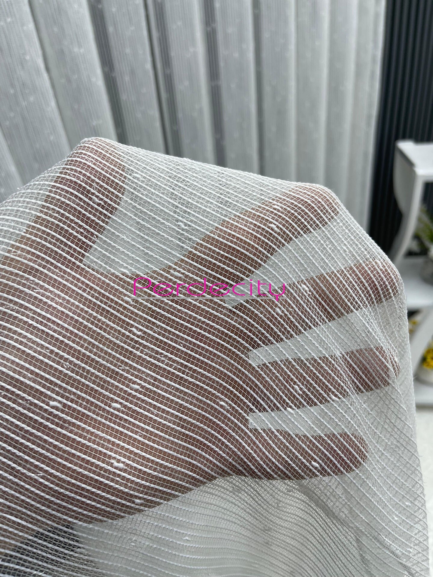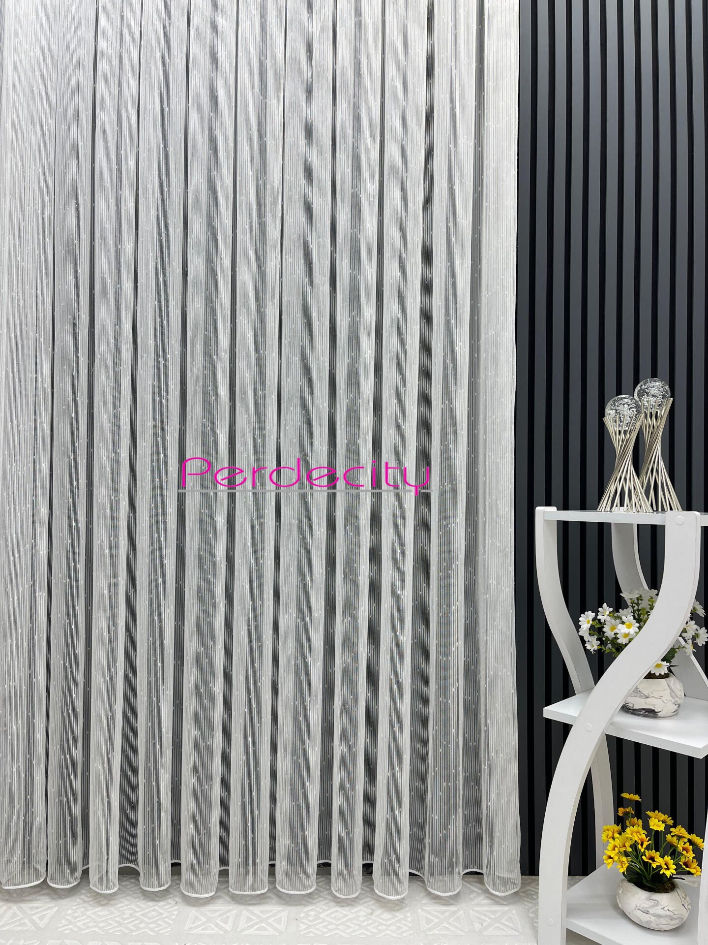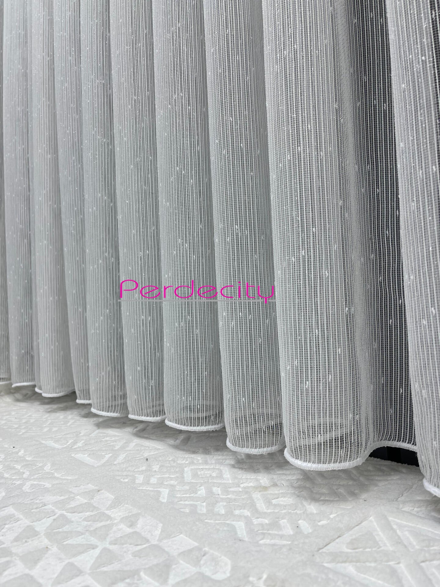 Fikse çizgili simli ponponlu tül perde ütü istemez her odaya uygun