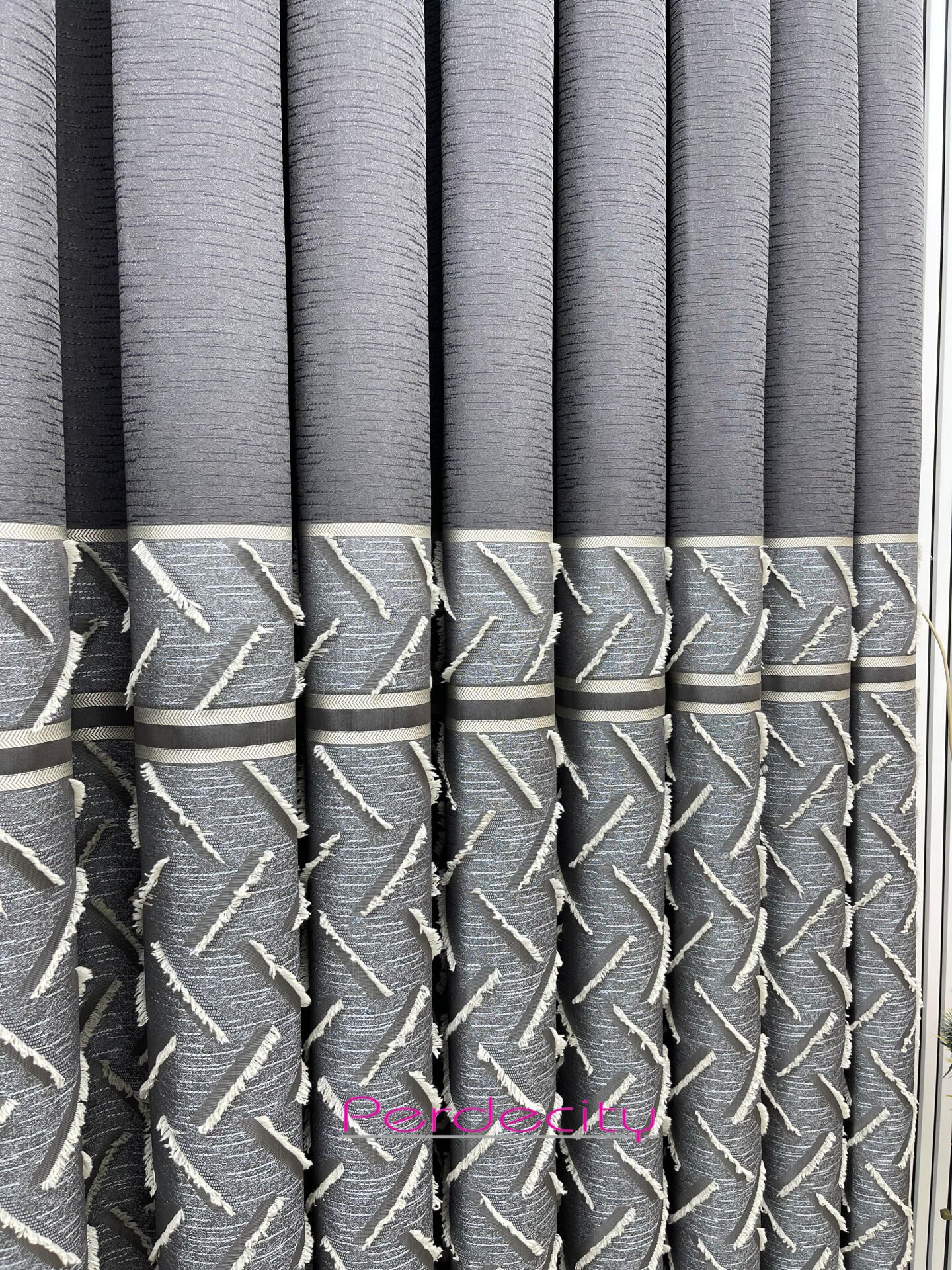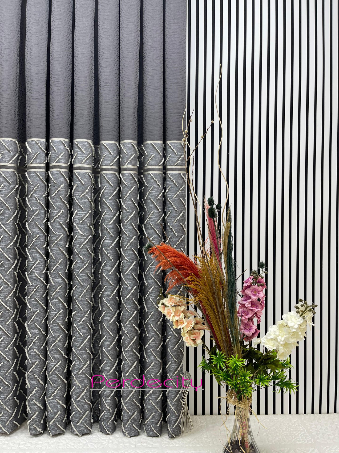 bohem tarzı saçaklı antrasit gri hayran pano fon perde 1x3 sık pile [tek kanat] ütü istemez
