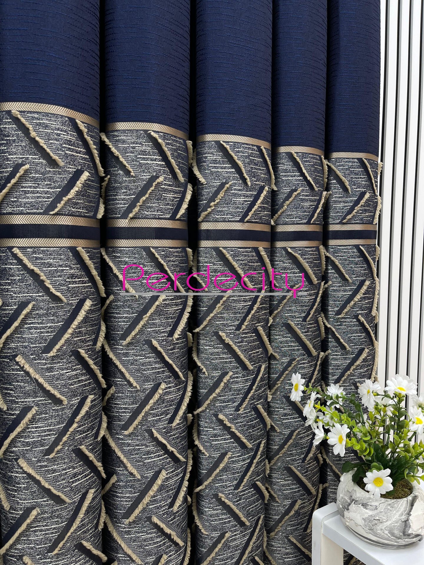 Bohem tarzı lacivert vizon saçaklı pano fon perde 1x3 sık pile tüm odalara uygun