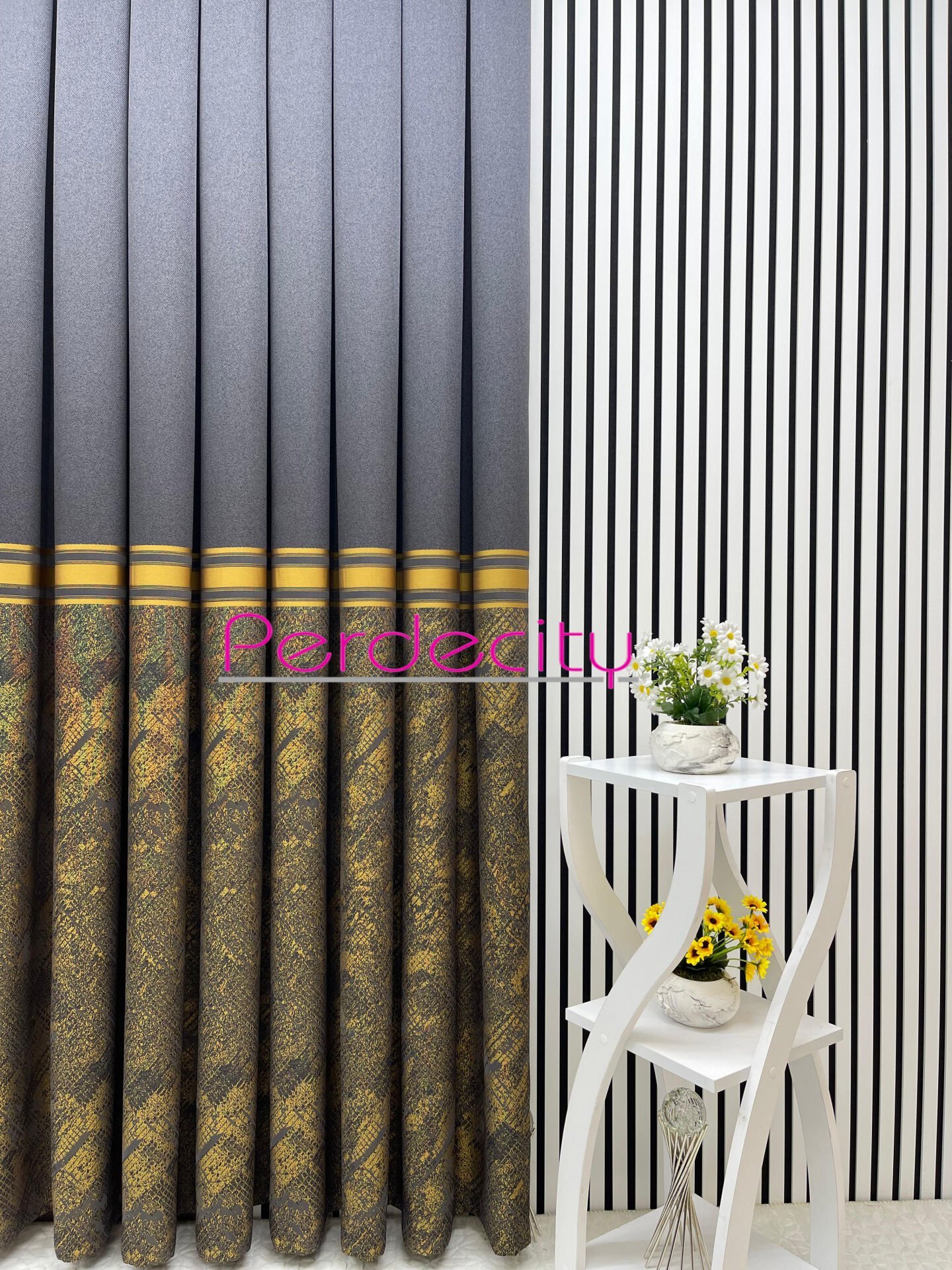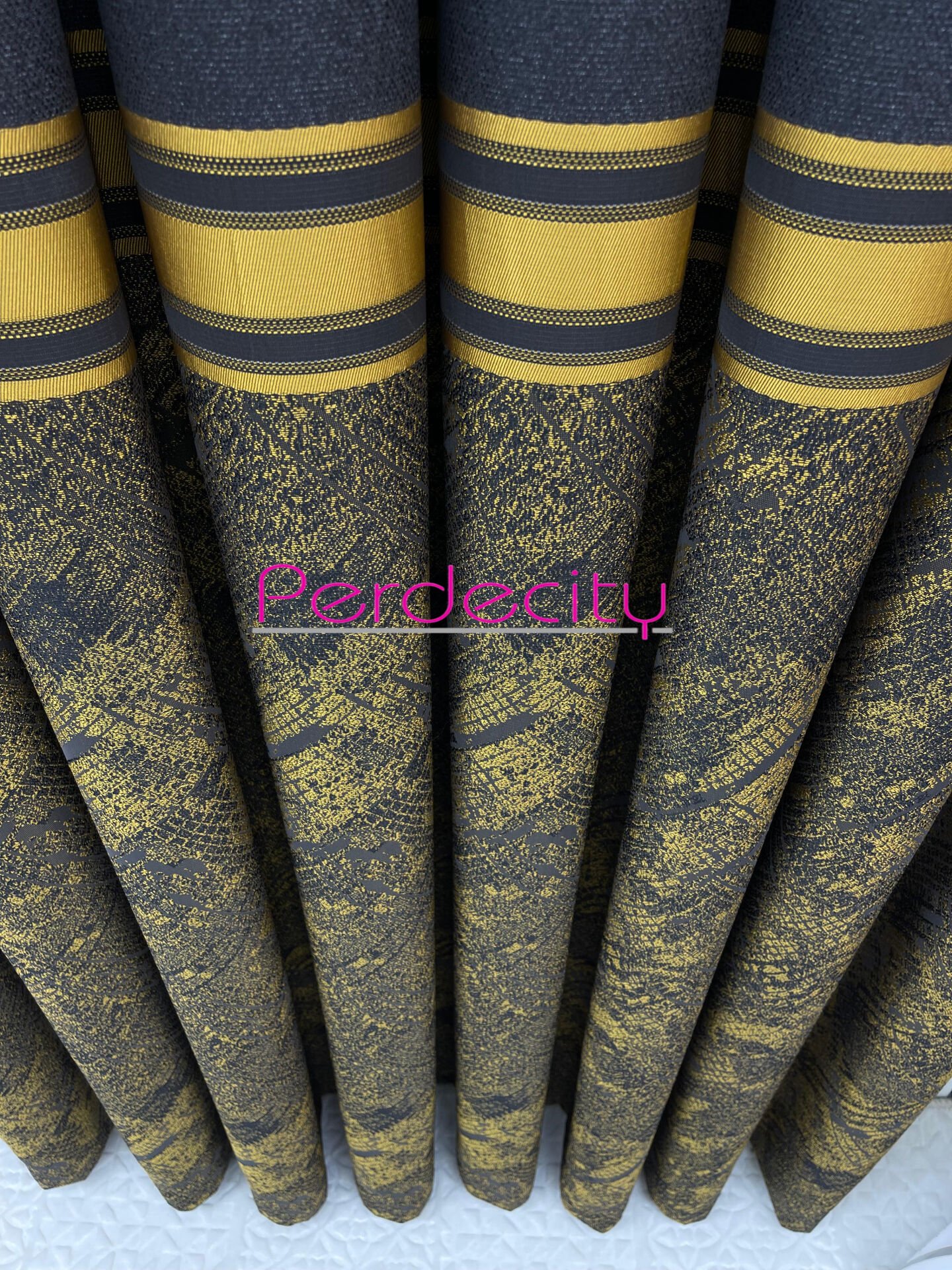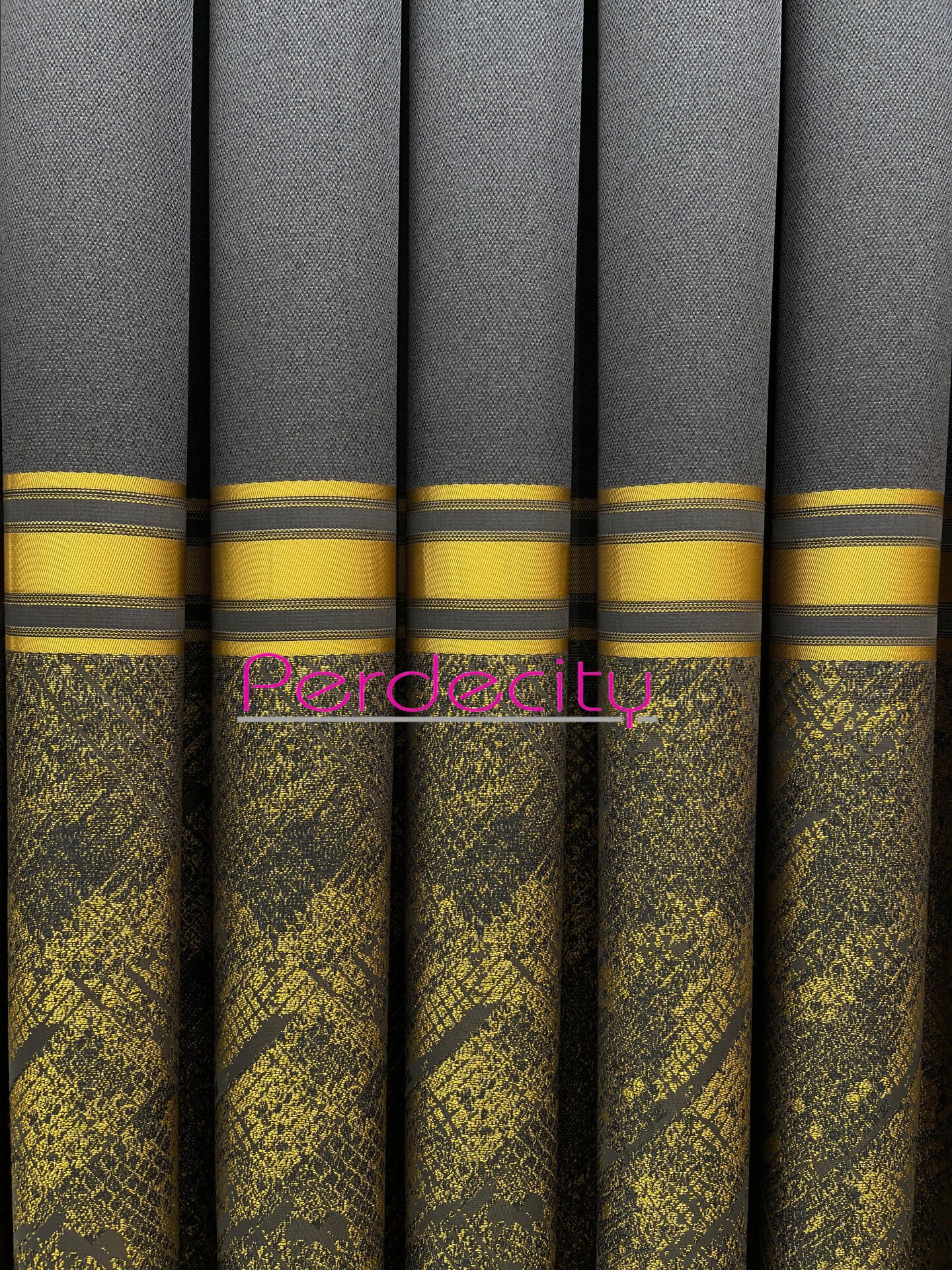 rüya antrasit gold desenli pano fon perde 1x3 sık pile
