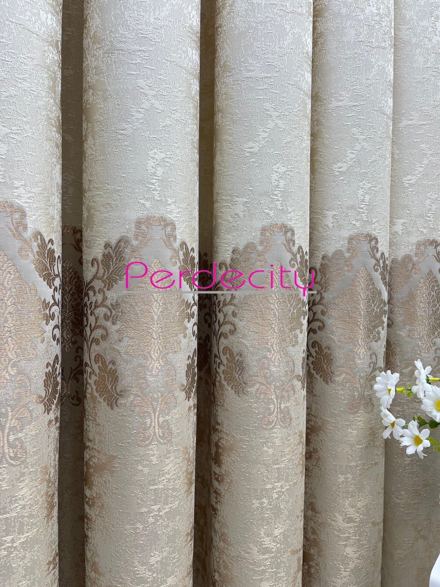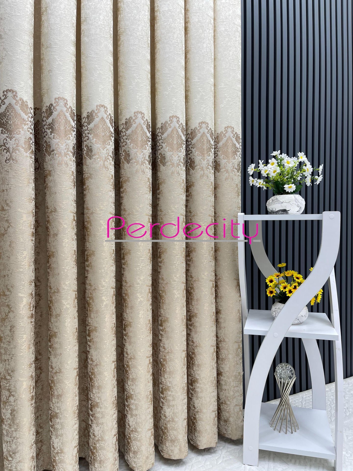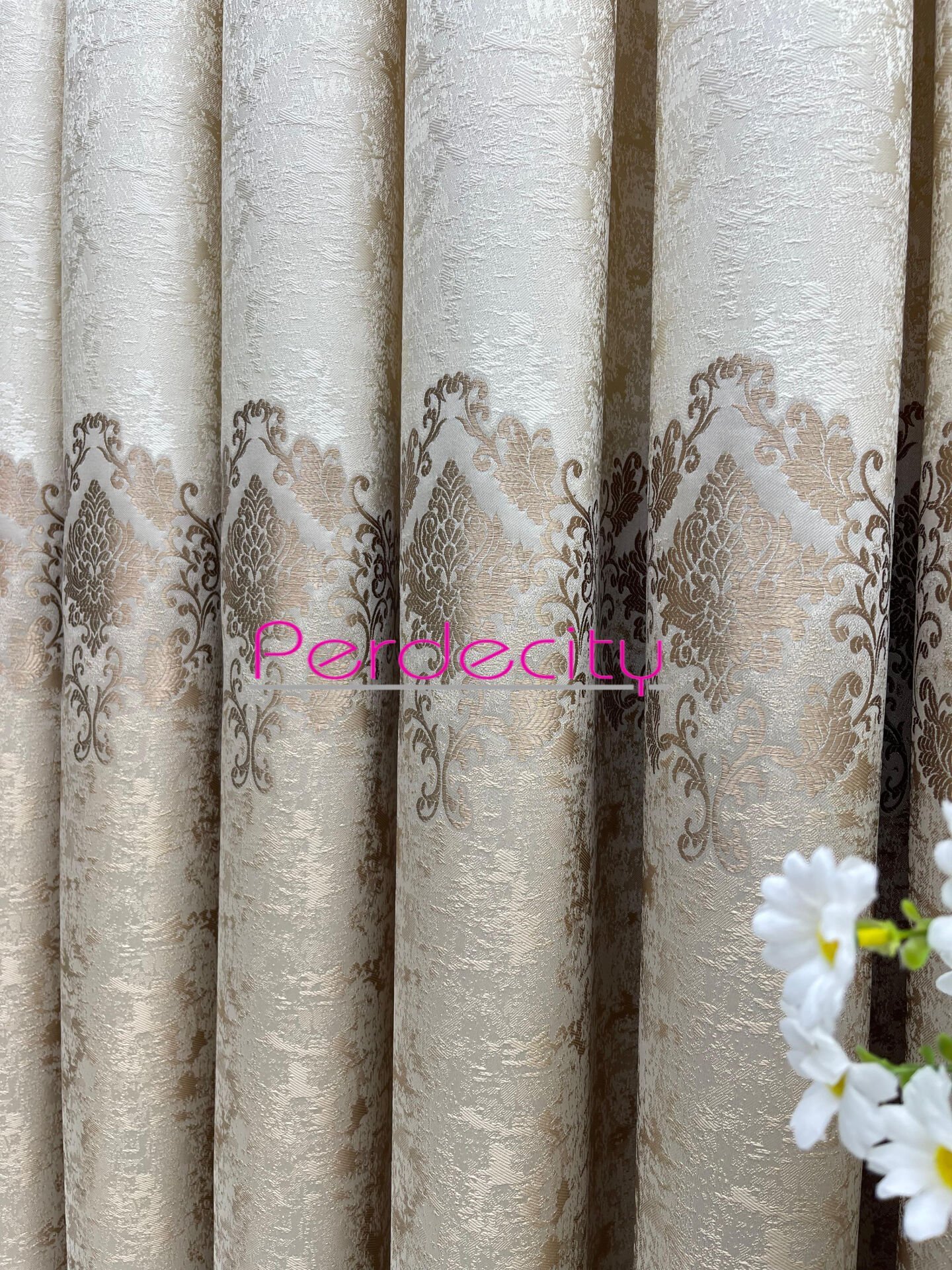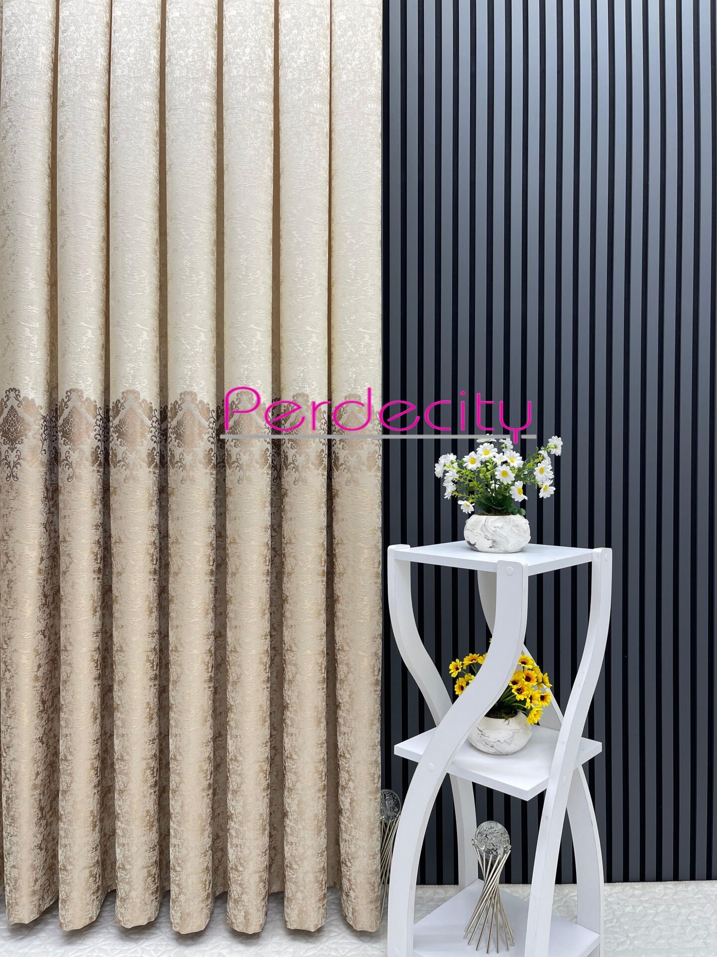 venüs krem vizon bohem renkler ortası desenli pano fon perde 1x3 sık pile