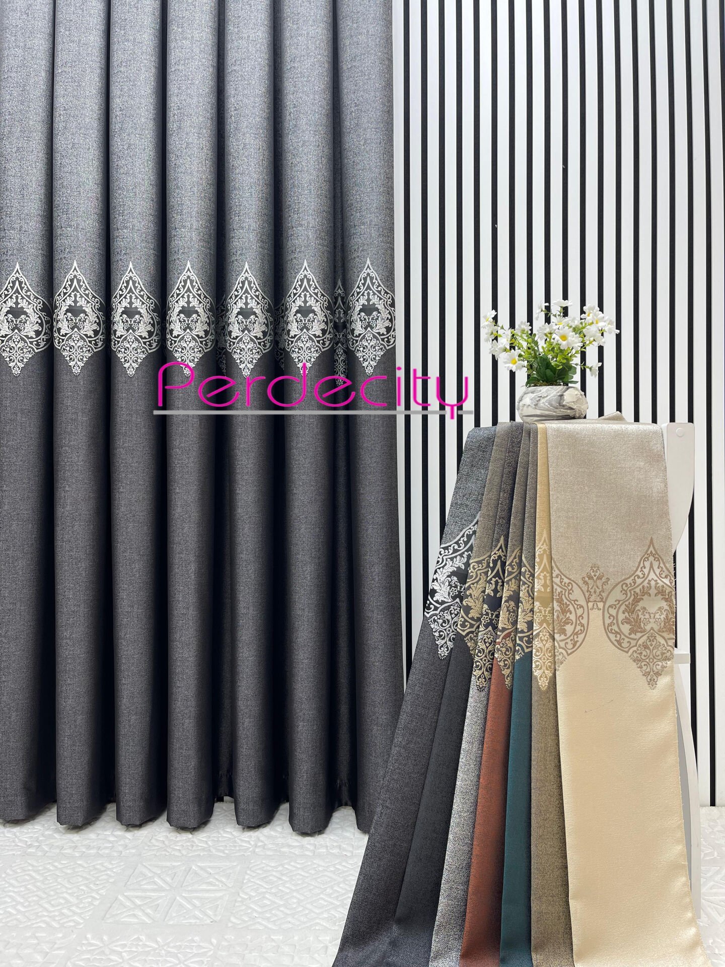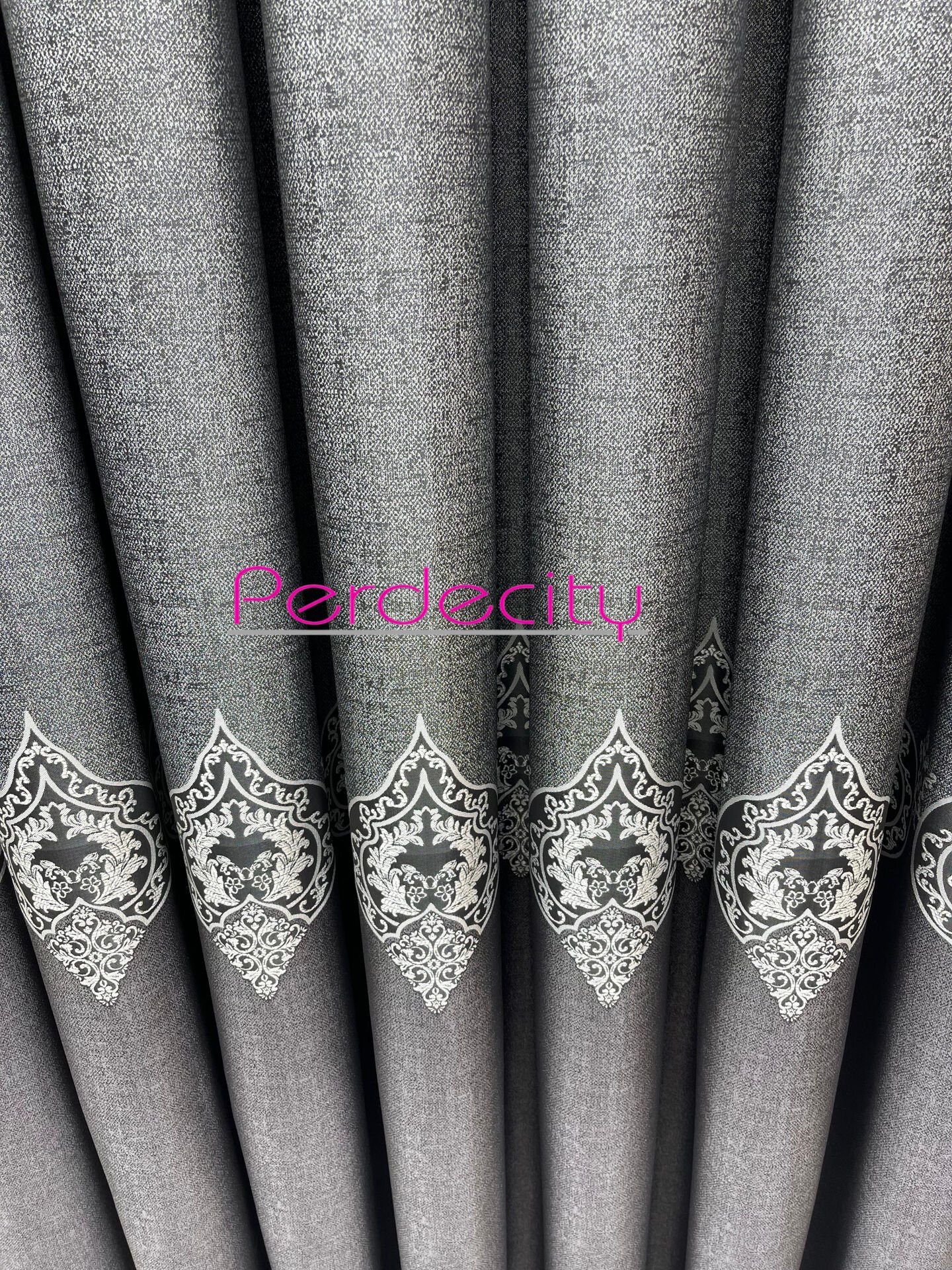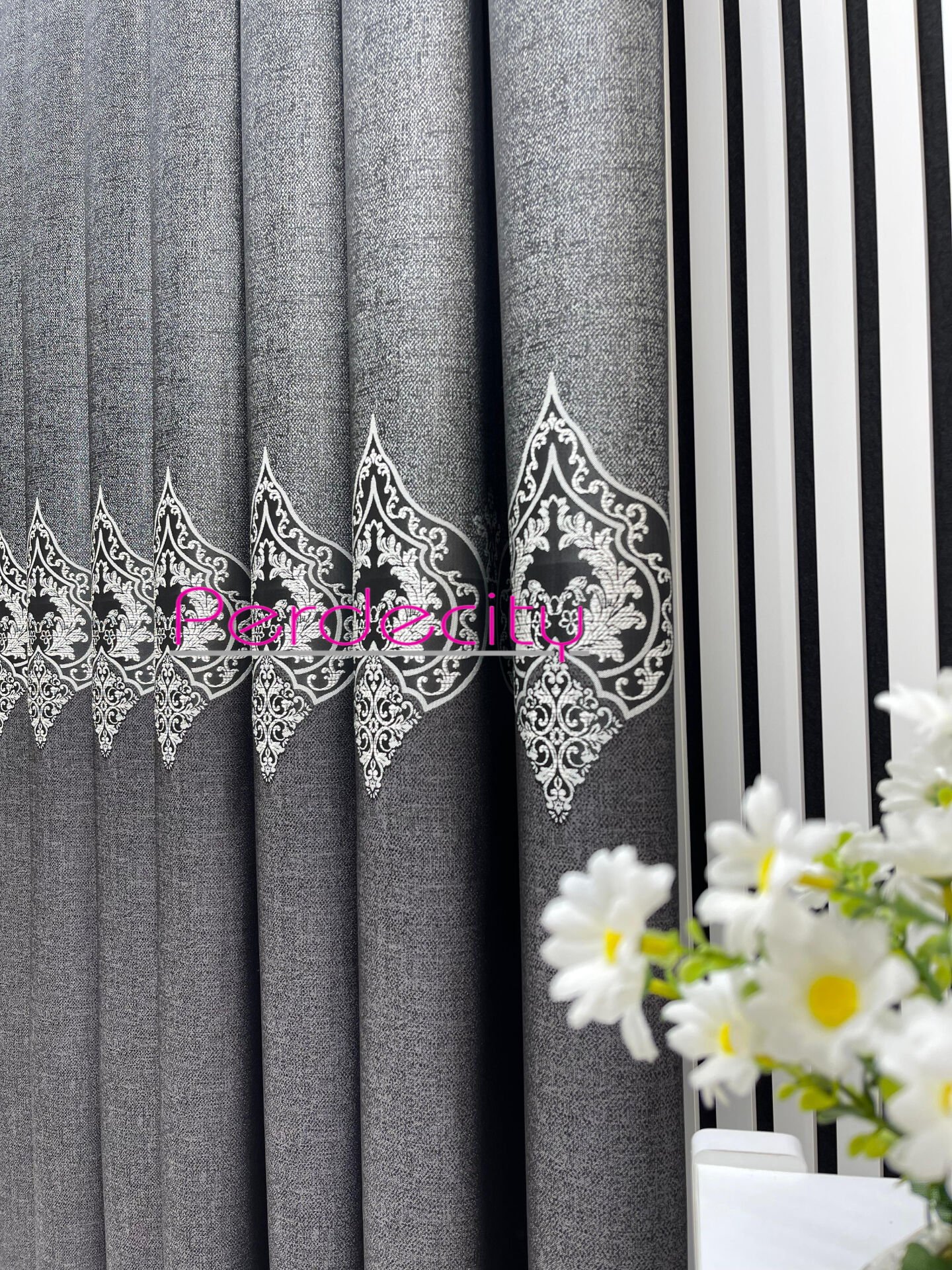 zeus antrasit gri osmanlı desen detaylı pano fon perde ütü istemez premium kalite