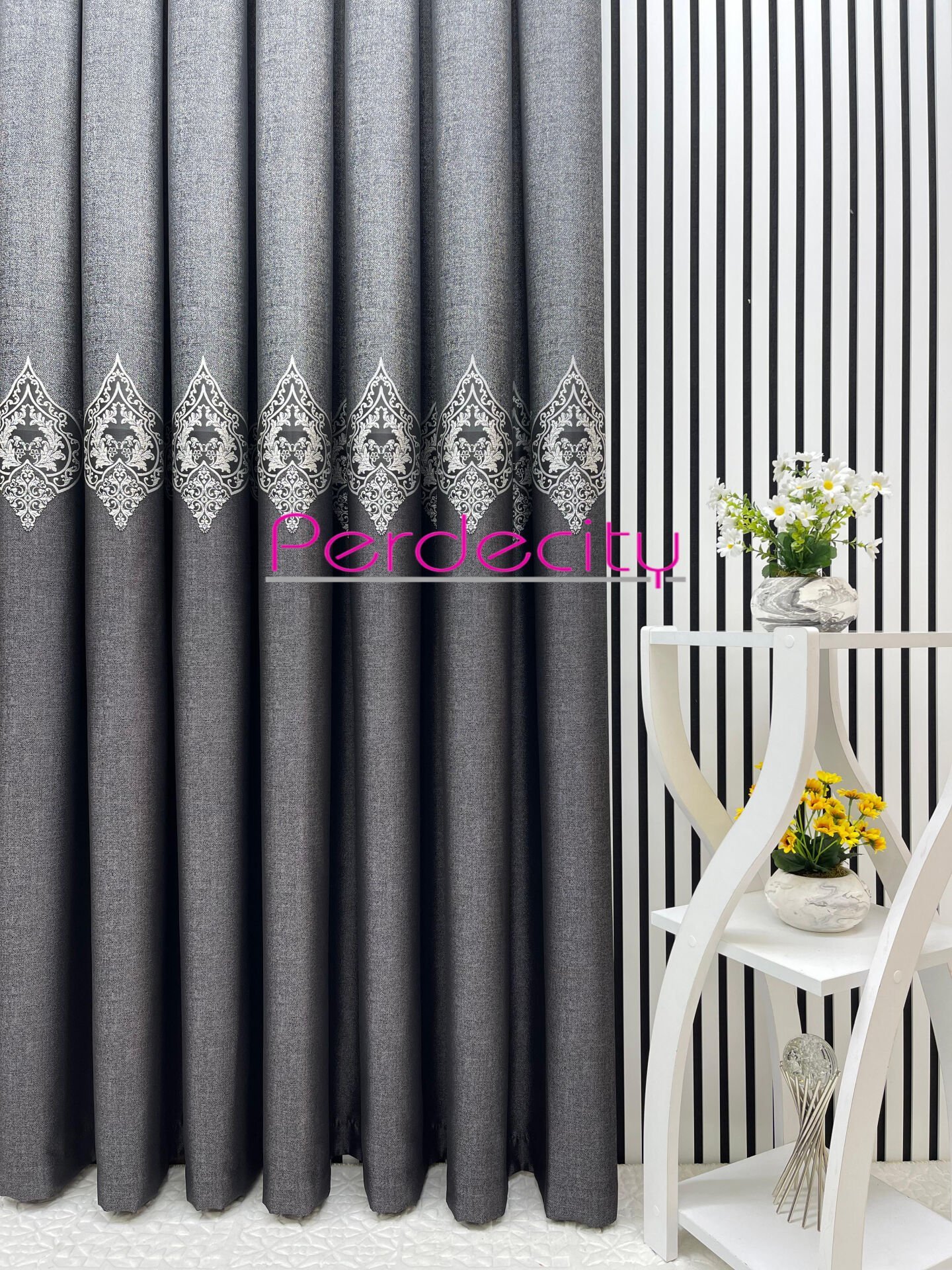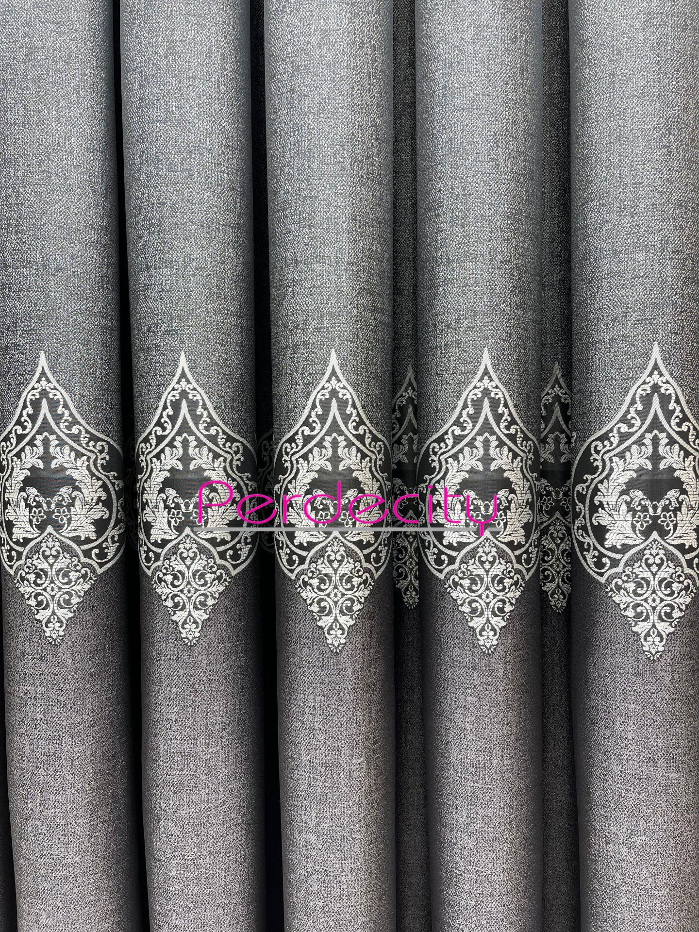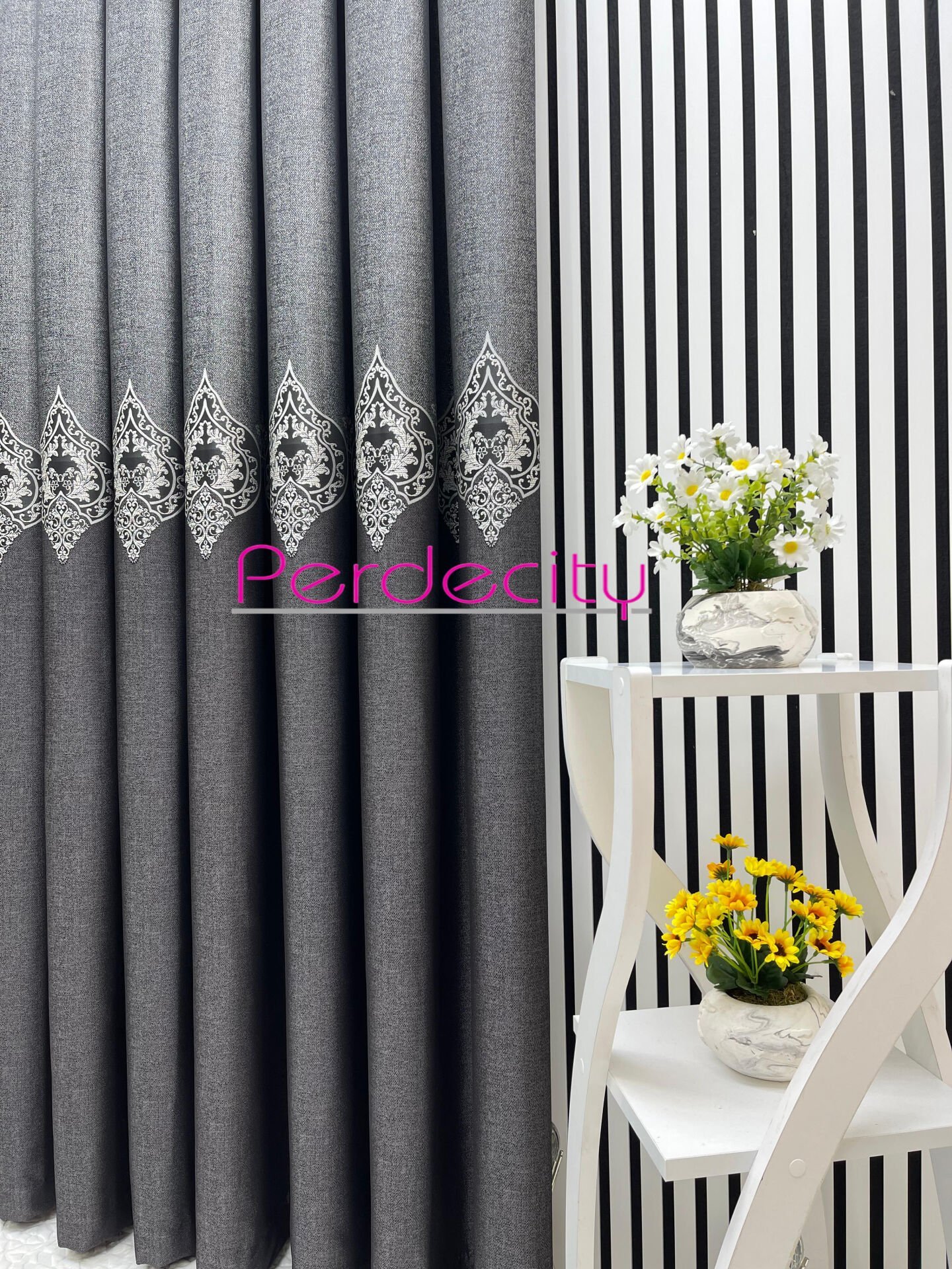 zeus antrasit gri osmanlı desen detaylı pano fon perde ütü istemez premium kalite