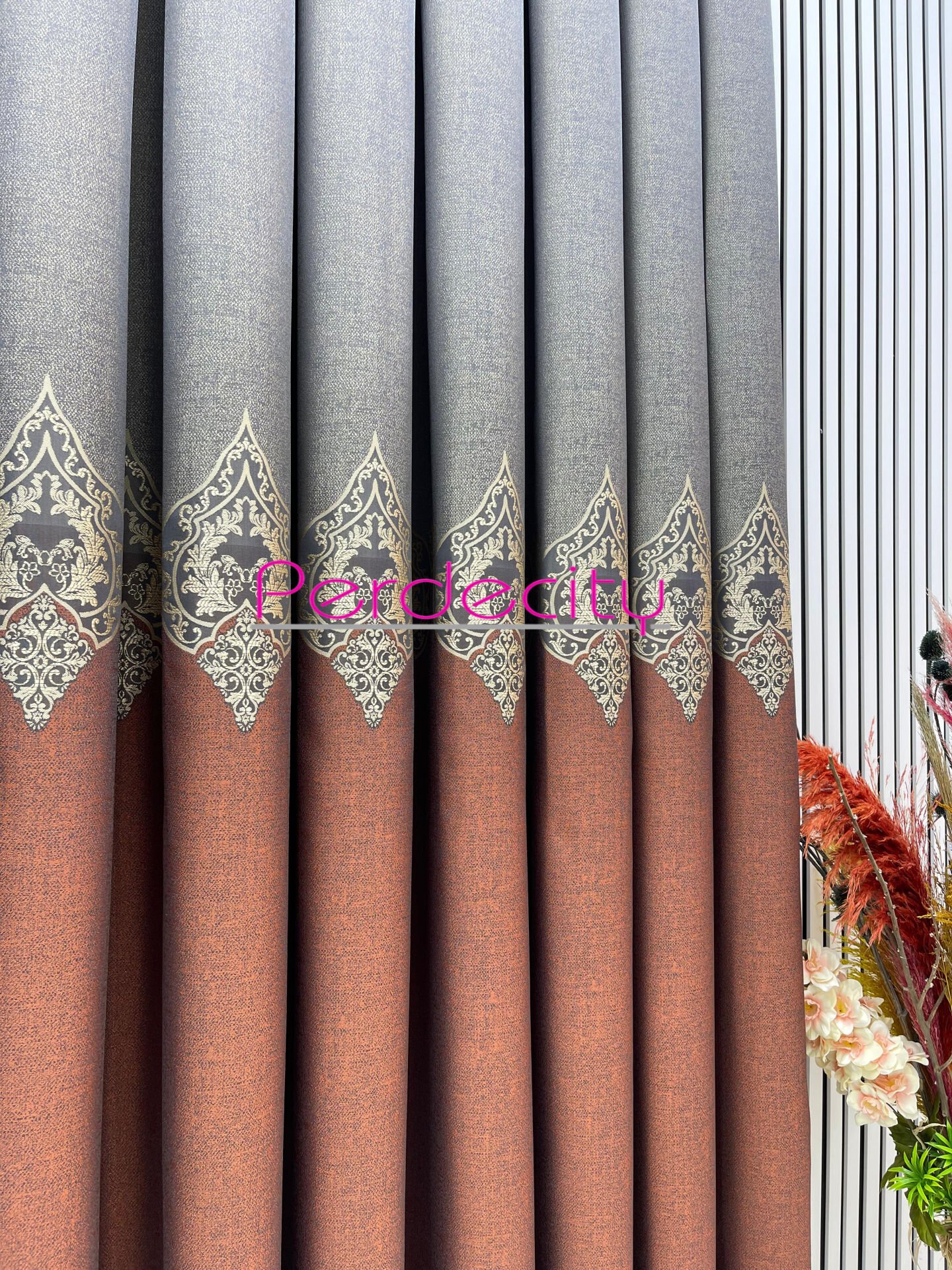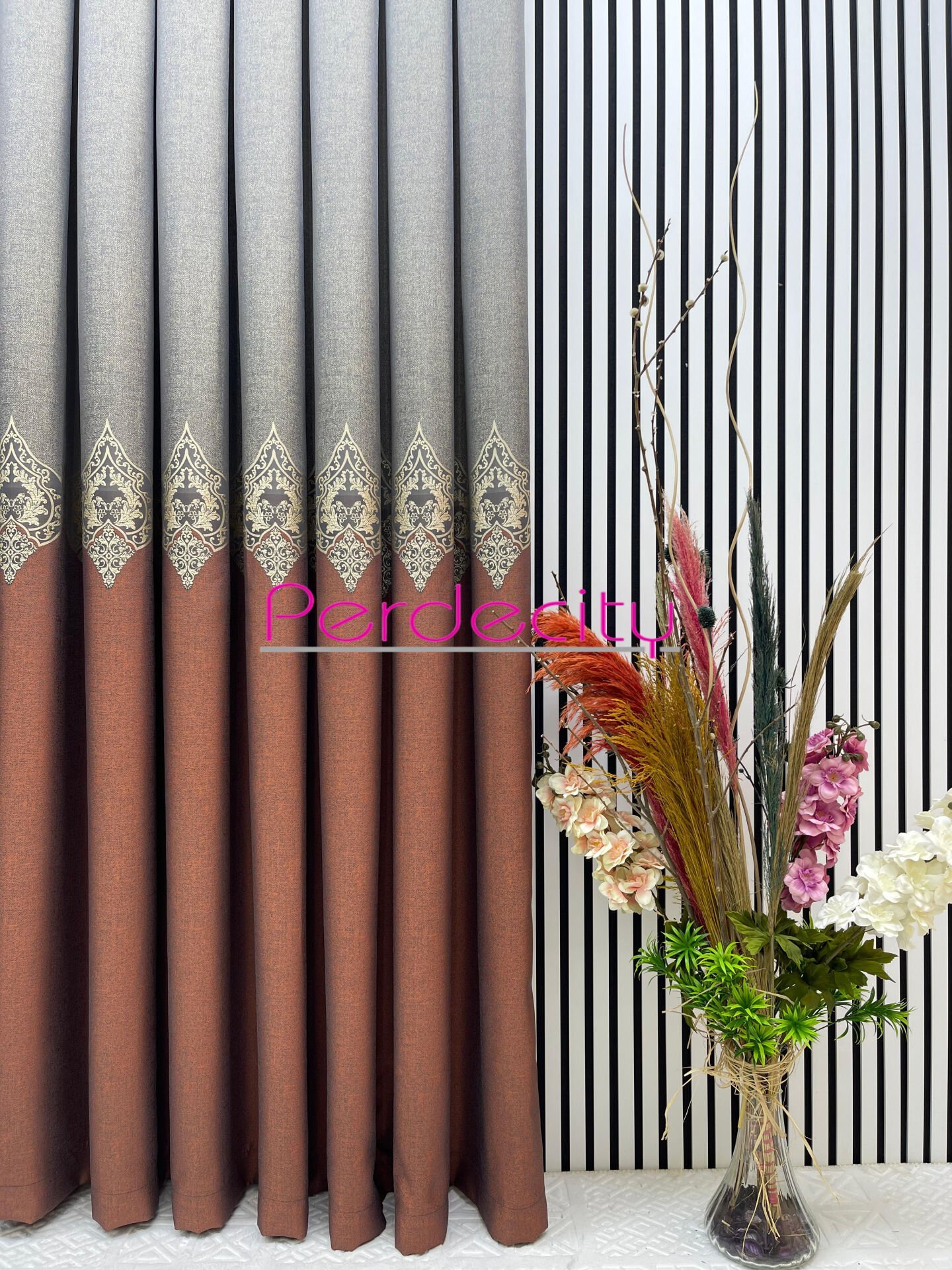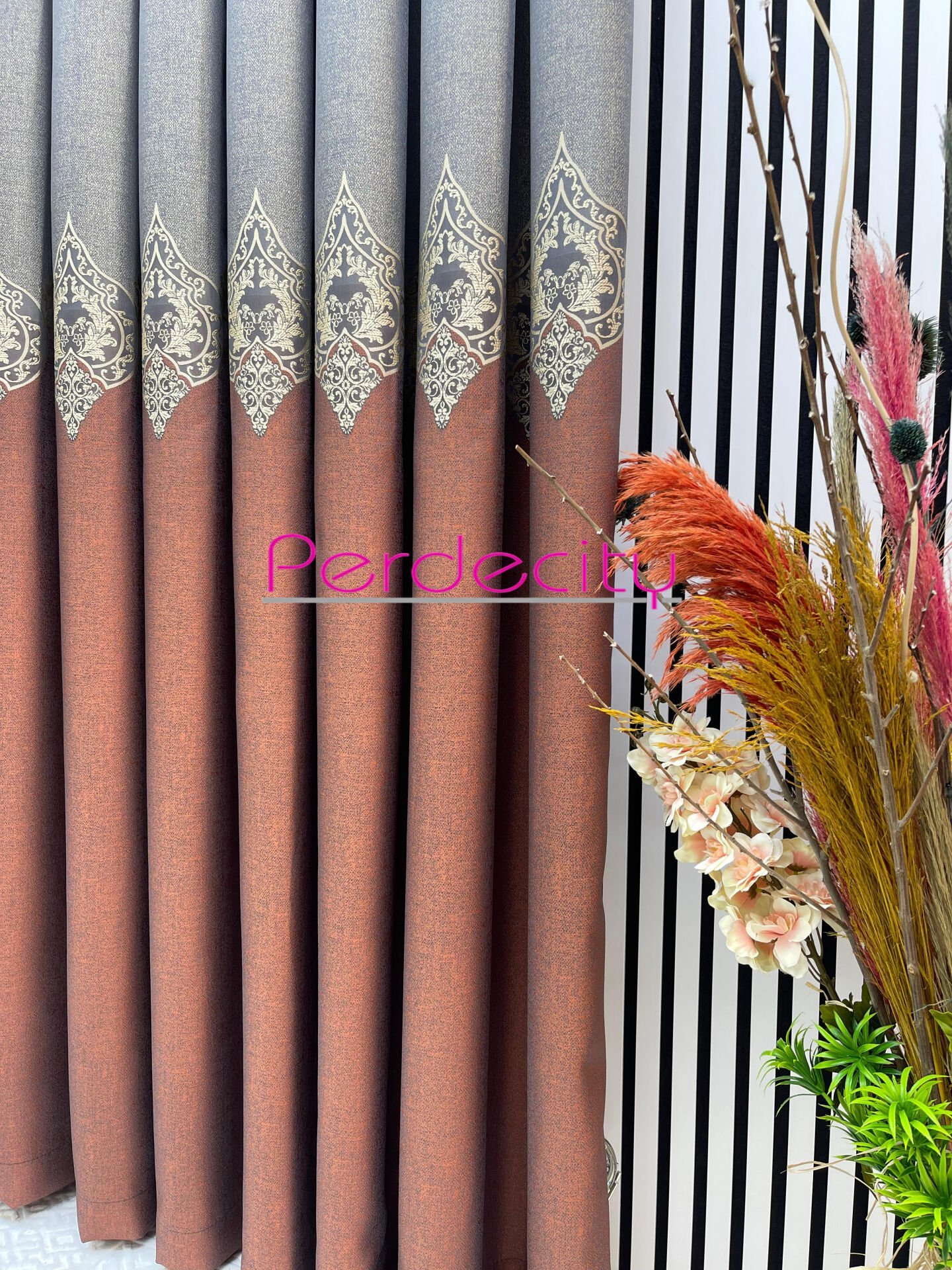 zeus kiremit bej osmanlı desen detaylı pano fon perde ütü istemez kırışma yapmaz