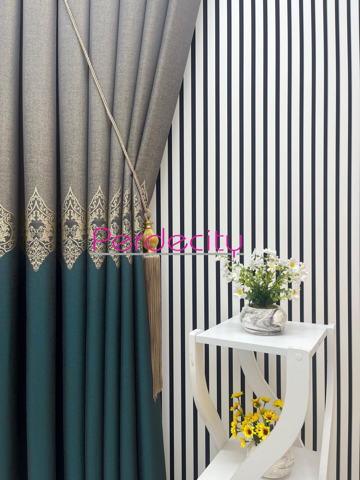 zeus yeşil gri pano fon perde 1x3 sık pile [tek kanat] ütü istemez her odaya uygun